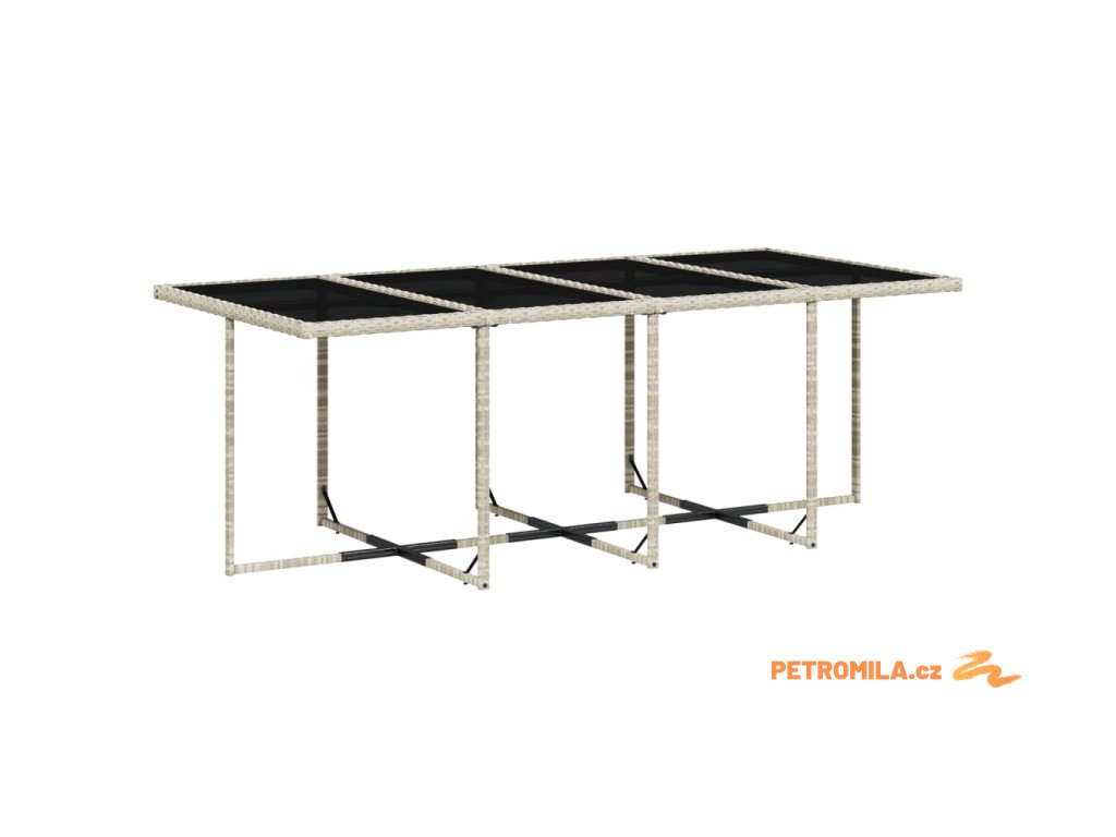 - Materiál: PE ratan, práškově lakovaná ocel, tvrzené sklo