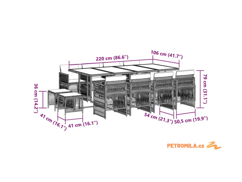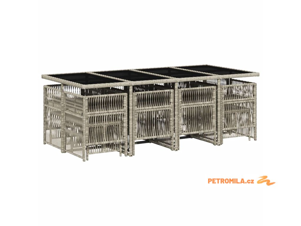 13dílný zahradní jídelní set s poduškami světle šedý polyratan