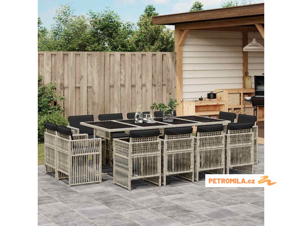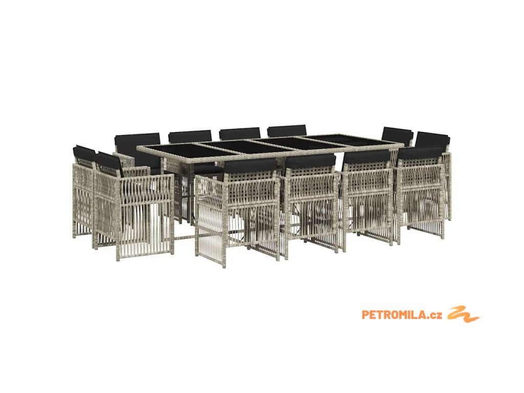 13dílný zahradní jídelní set s poduškami světle šedý polyratan