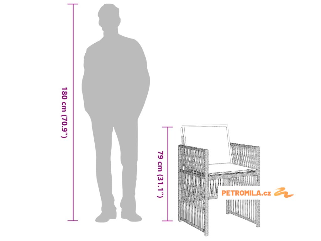 - Materiál: PE ratan, práškově lakovaná ocel