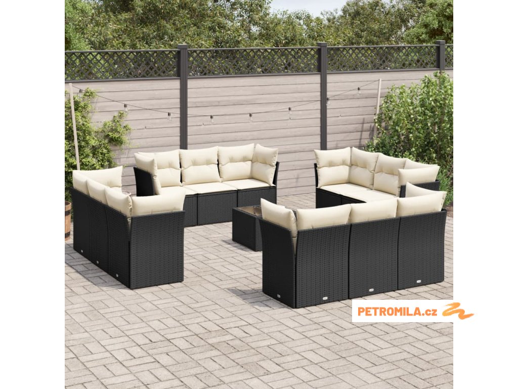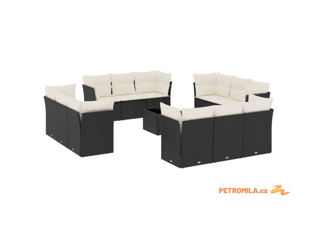 13dílný zahradní sedací souprava s poduškami černý polyratan