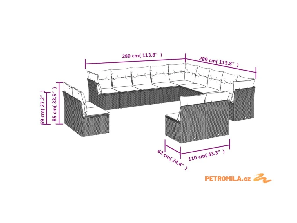 - 13x poduška na sedák s odnímatelným a pratelným potahem