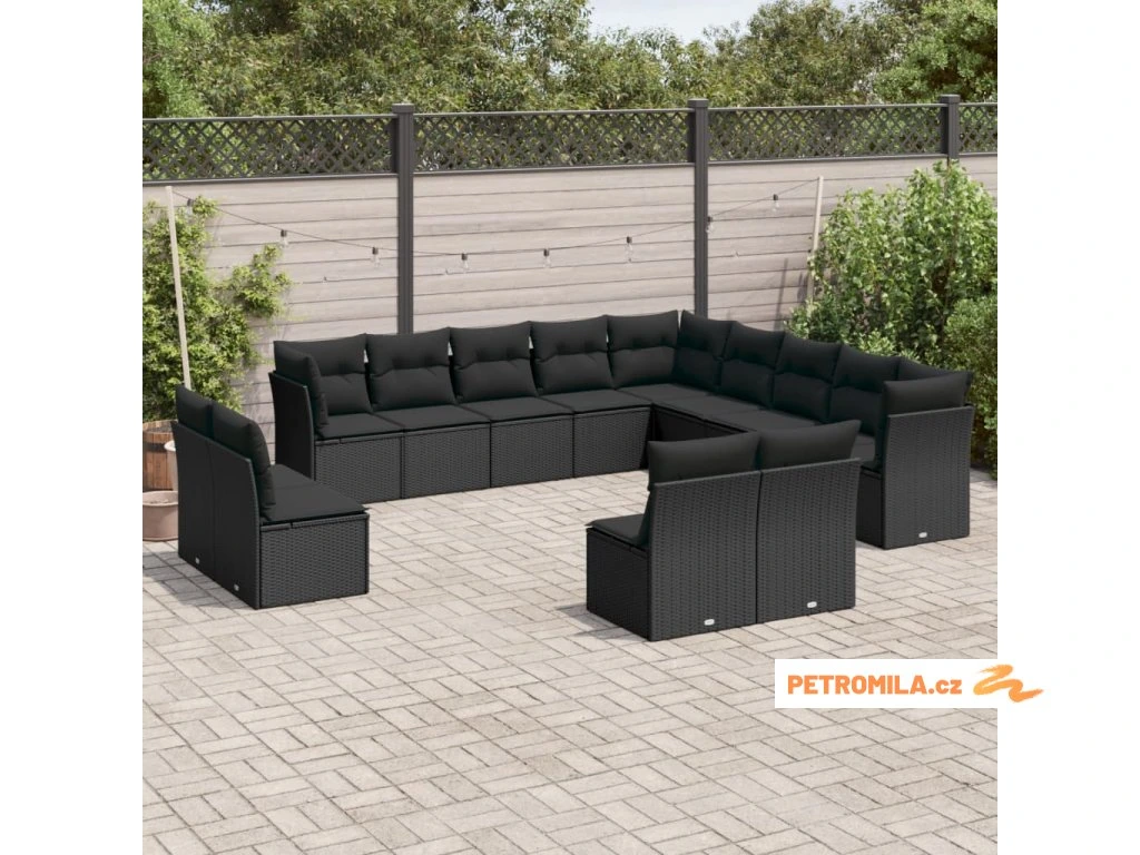 13dílný zahradní sedací souprava s poduškami černý polyratan