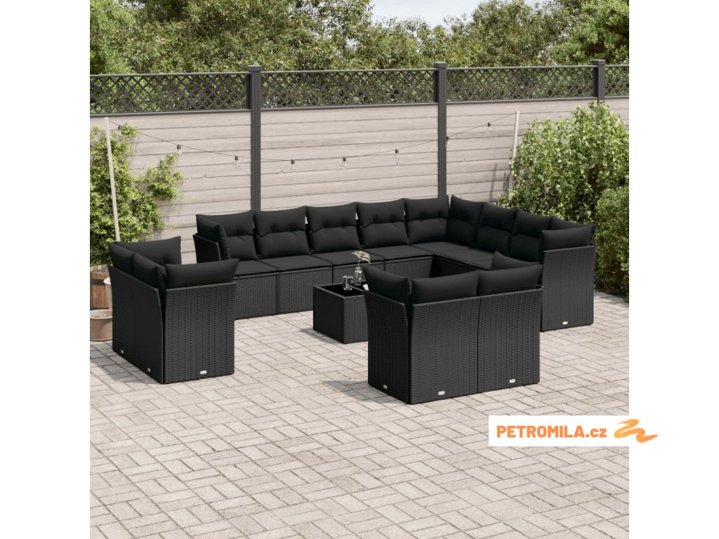 13dílný zahradní sedací souprava s poduškami černý polyratan
