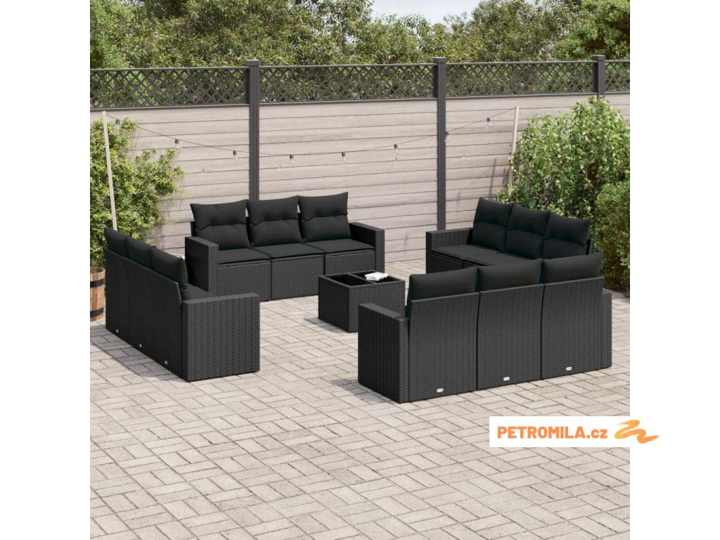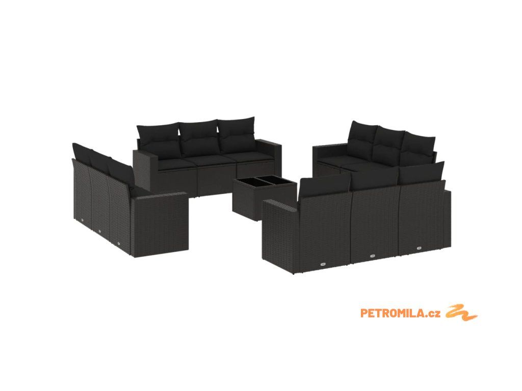 13dílný zahradní sedací souprava s poduškami černý polyratan