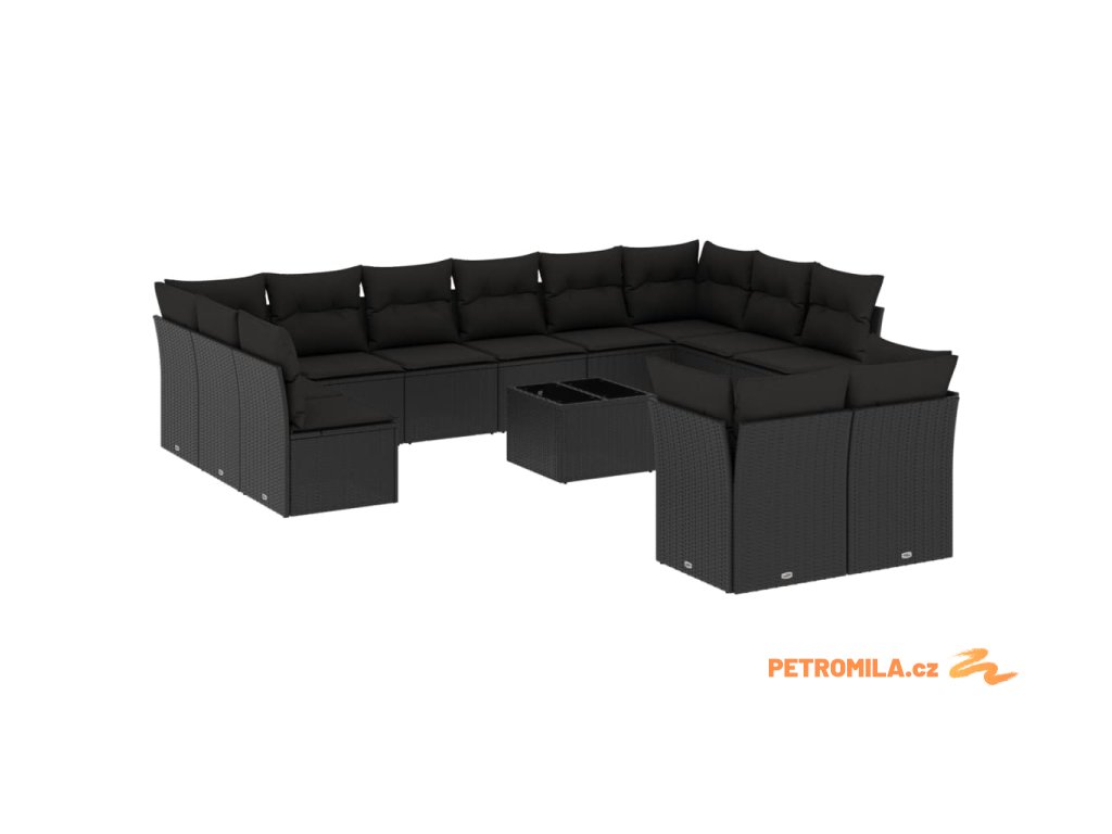 13dílný zahradní sedací souprava s poduškami černý polyratan