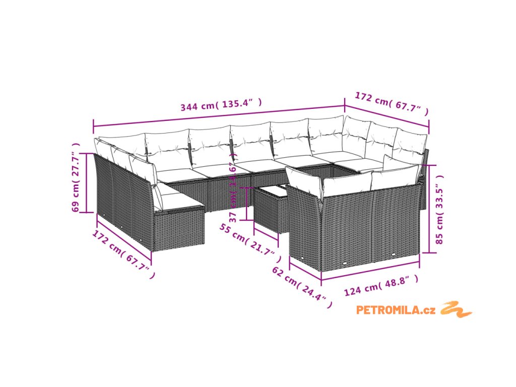 - 12x poduška na sedák s odnímatelným a pratelným potahem