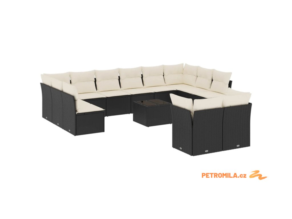 13dílný zahradní sedací souprava s poduškami černý polyratan