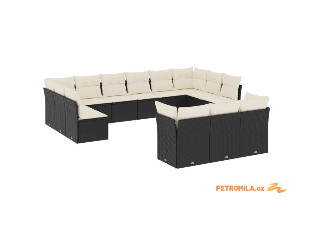13dílný zahradní sedací souprava s poduškami černý polyratan