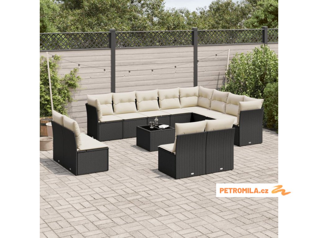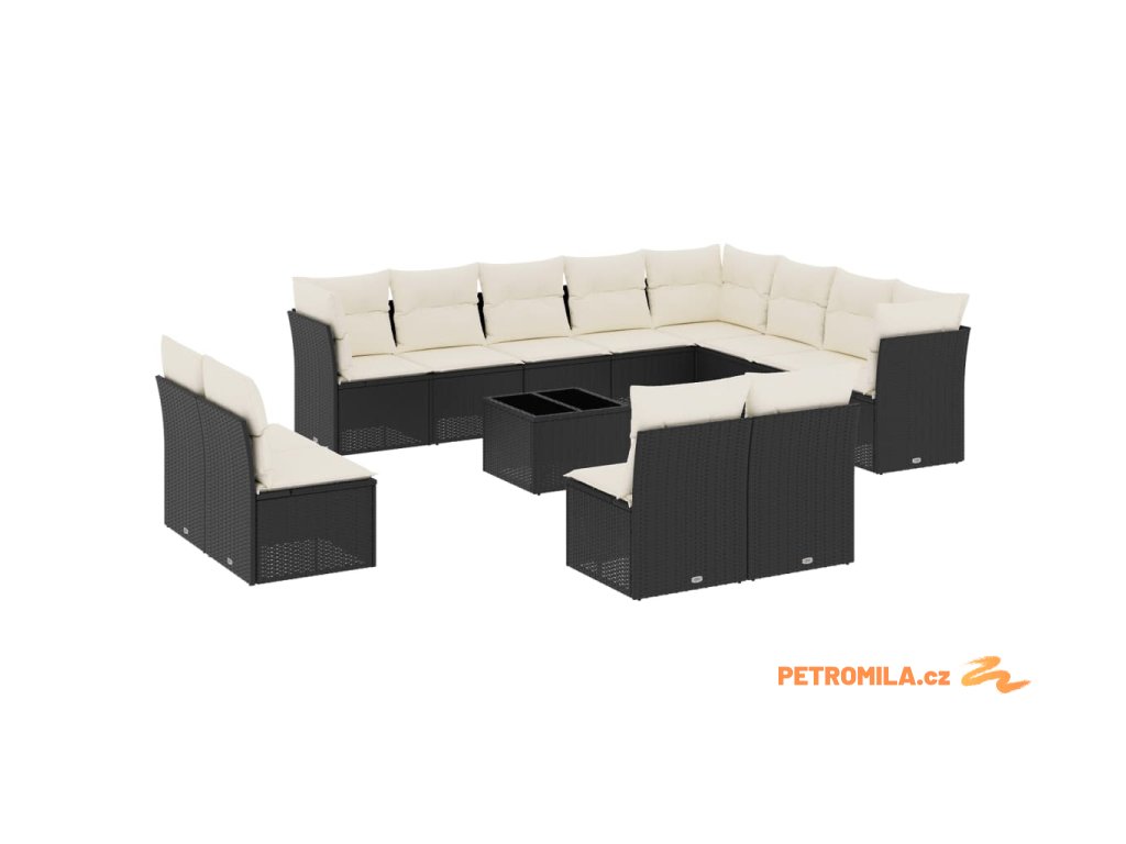 13dílný zahradní sedací souprava s poduškami černý polyratan