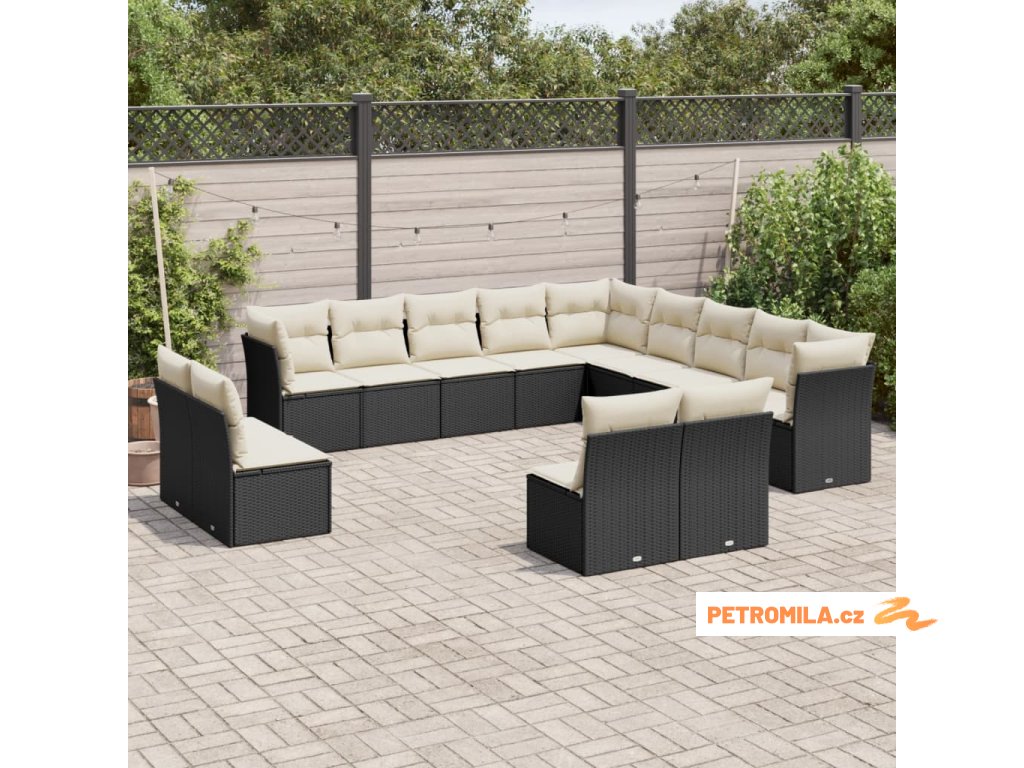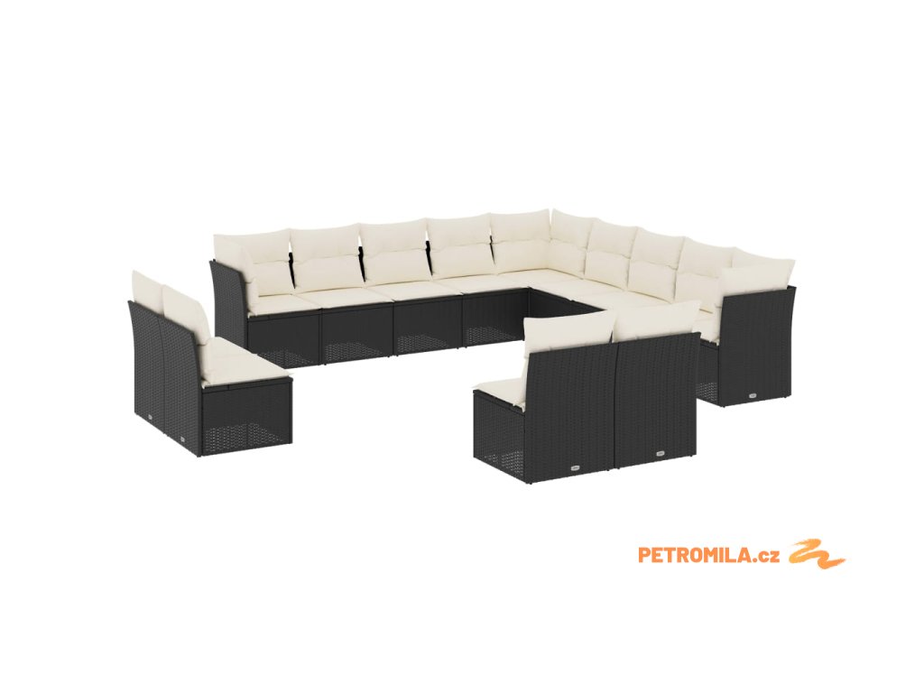 13dílný zahradní sedací souprava s poduškami černý polyratan