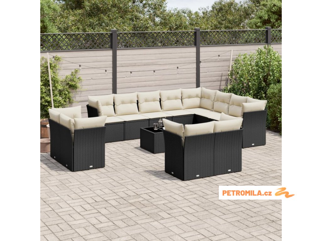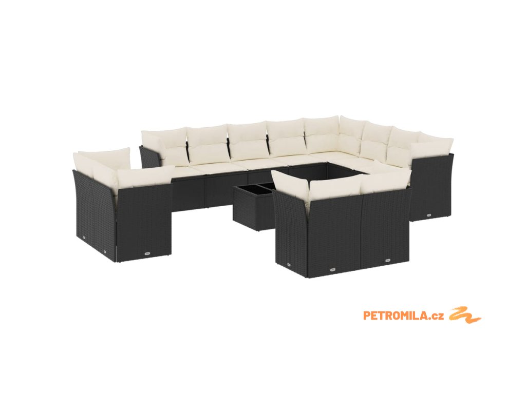 13dílný zahradní sedací souprava s poduškami černý polyratan