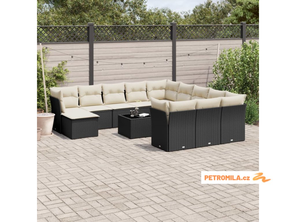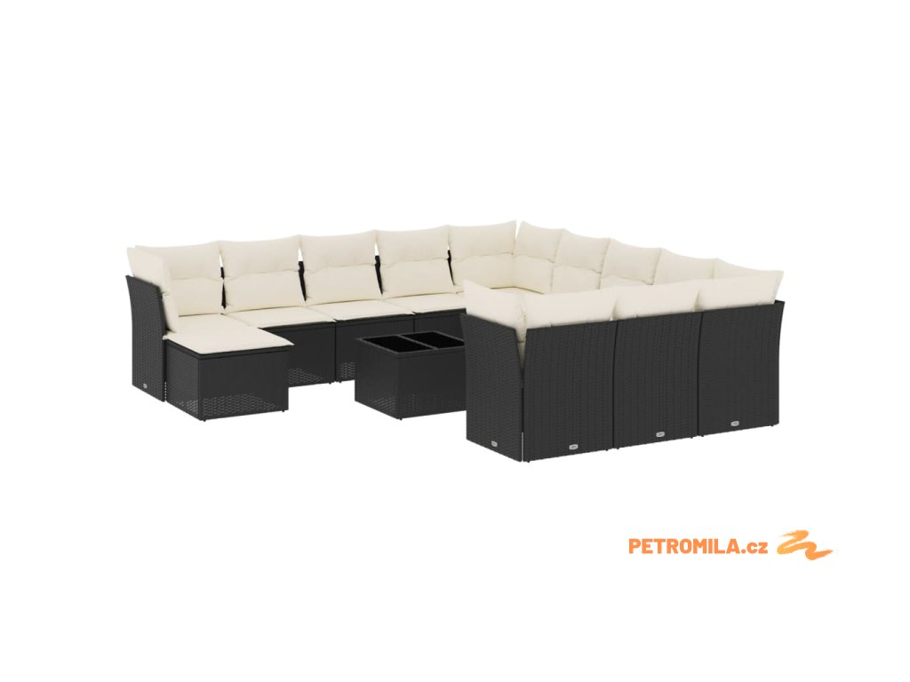 13dílný zahradní sedací souprava s poduškami černý polyratan