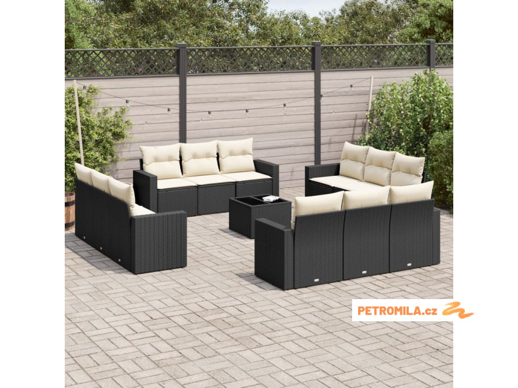 13dílný zahradní sedací souprava s poduškami černý polyratan