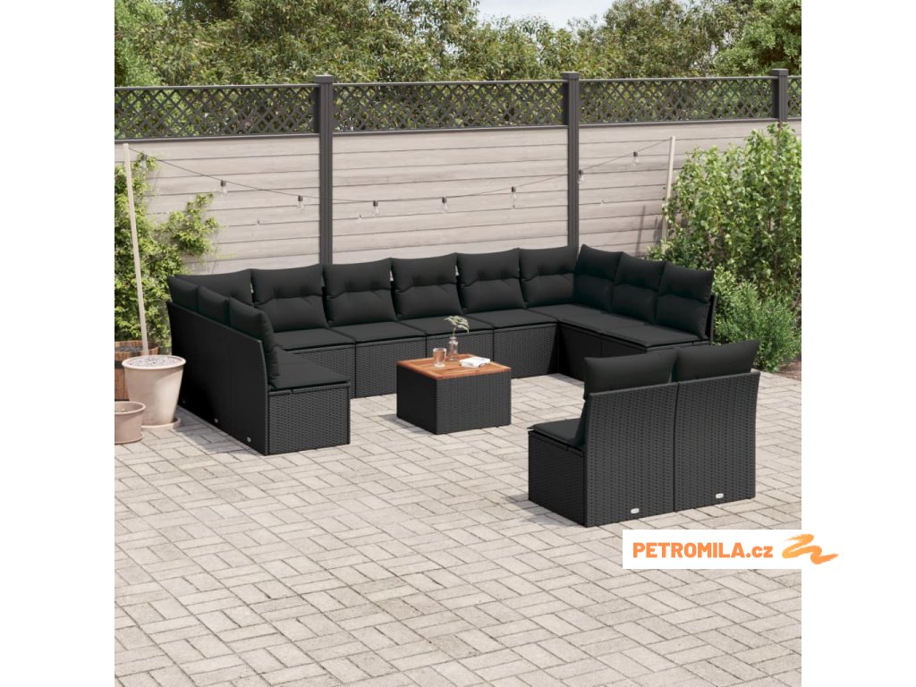 13dílný zahradní sedací souprava s poduškami černý polyratan