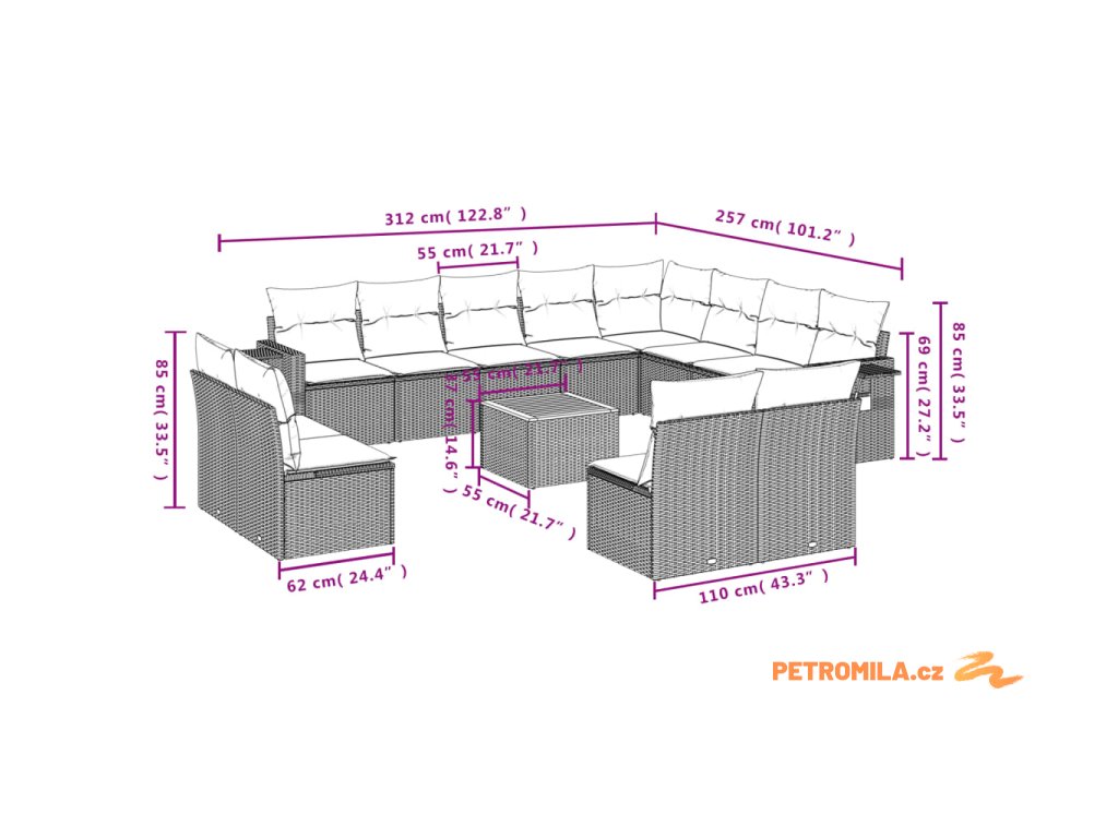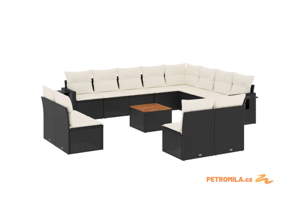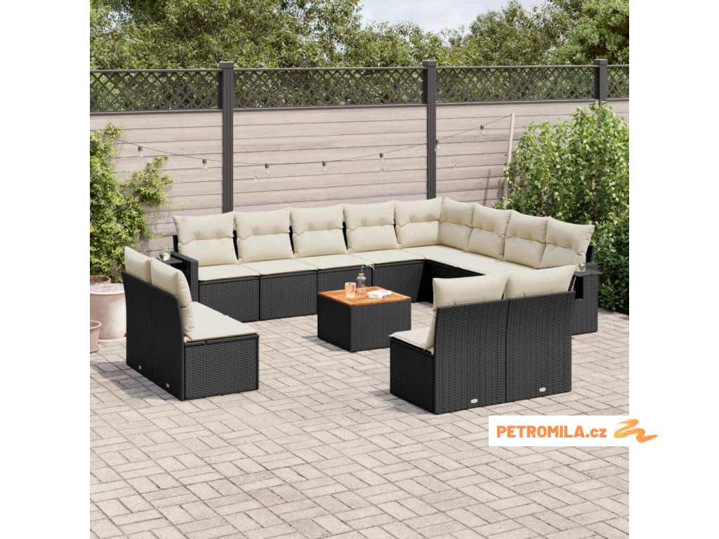 13dílný zahradní sedací souprava s poduškami černý polyratan