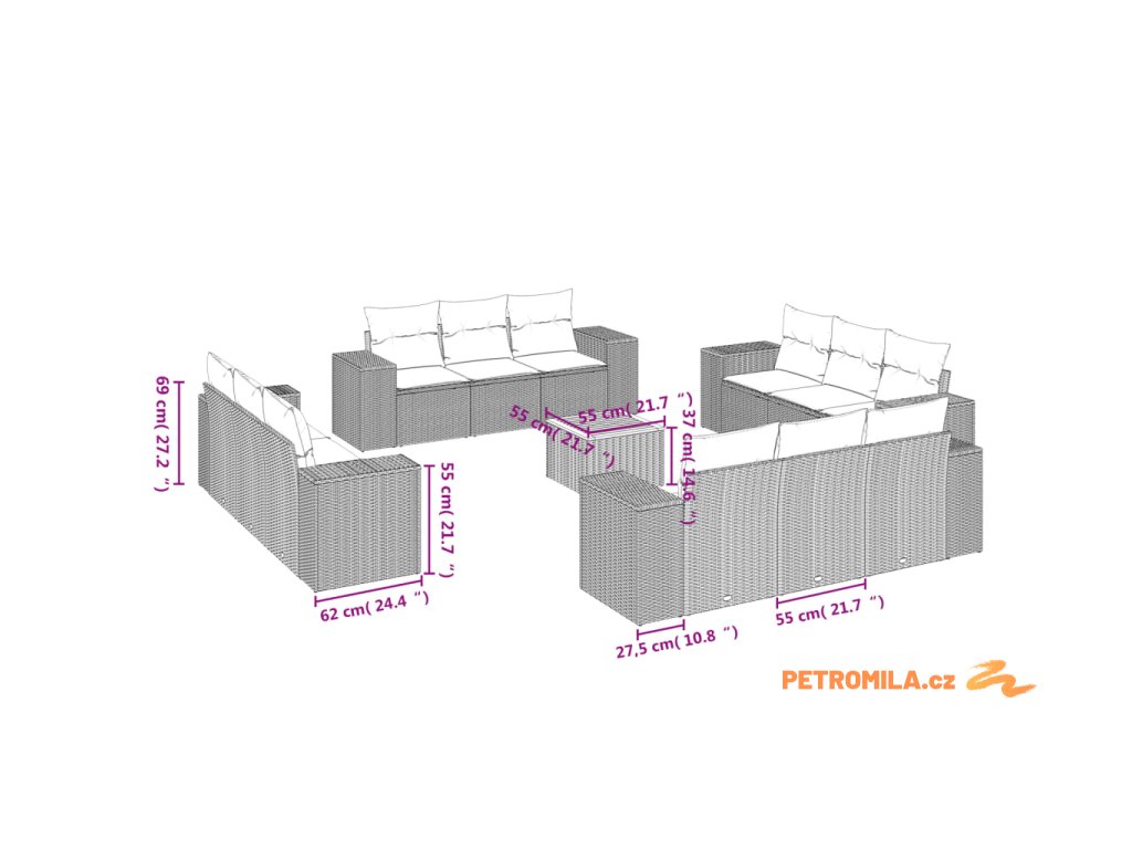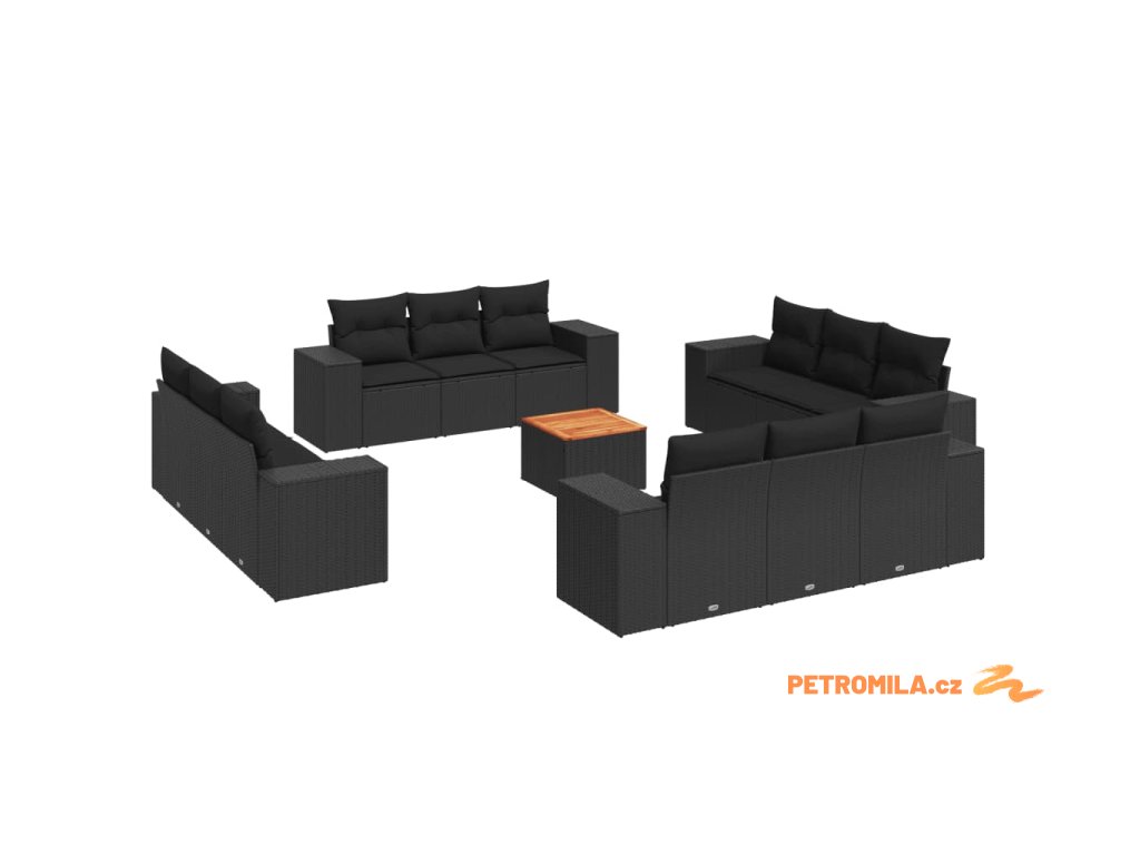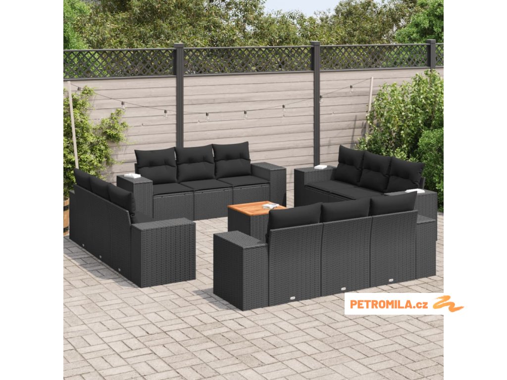 13dílný zahradní sedací souprava s poduškami černý polyratan