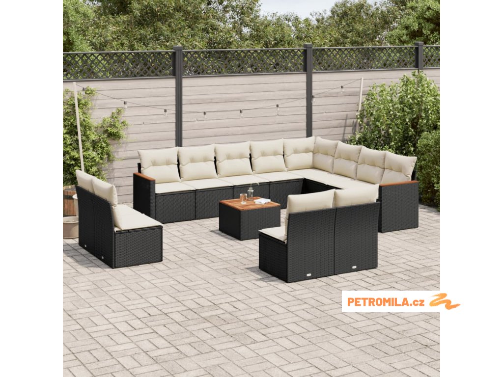 13dílný zahradní sedací souprava s poduškami černý polyratan