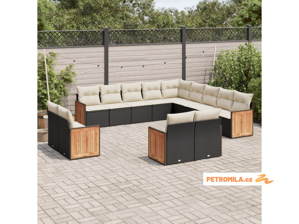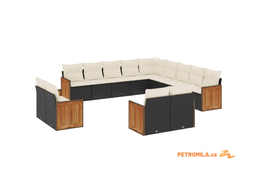 13dílný zahradní sedací souprava s poduškami černý polyratan