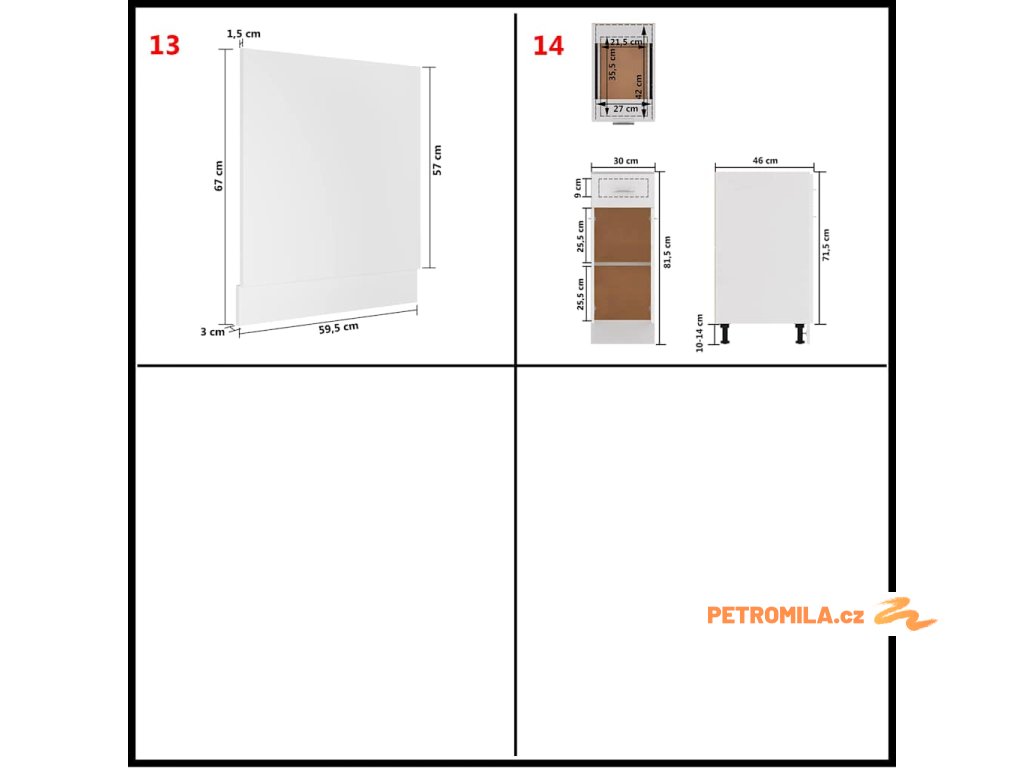 - 1 x Zásuvková spodní skříňka: 30 x 46 x 81,5 cm (Š x H x V)
