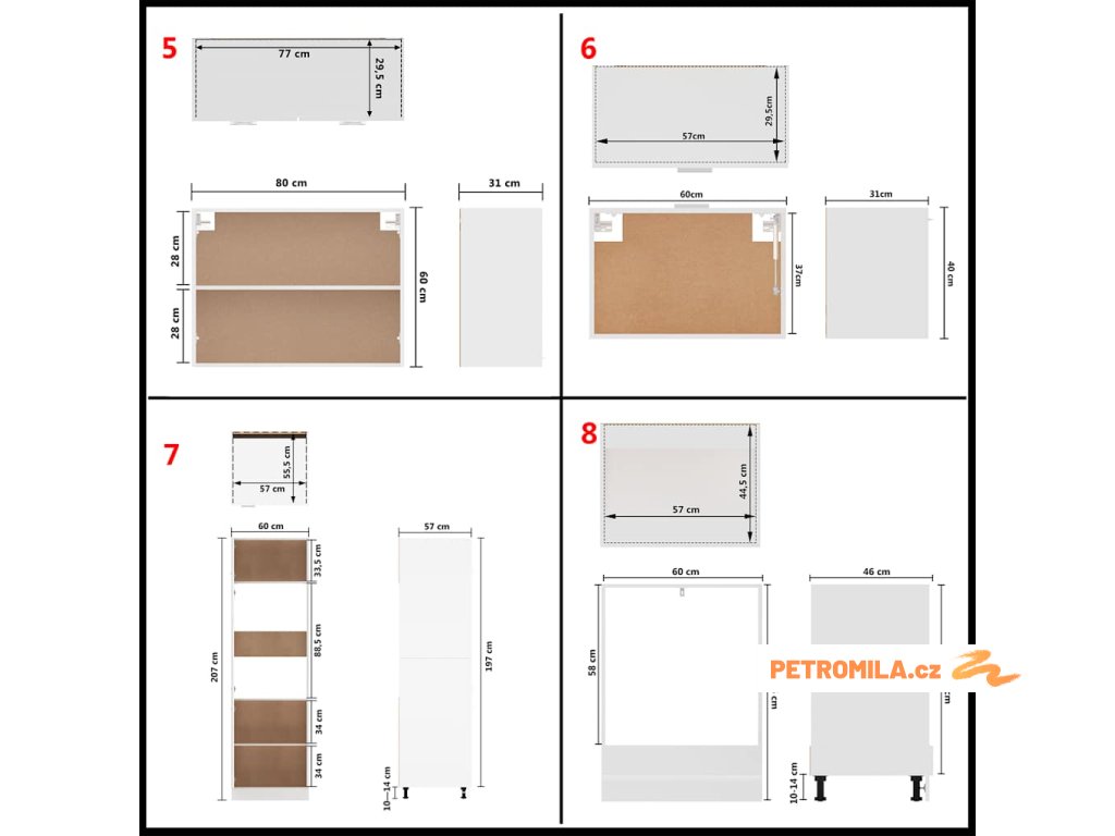 - 1 x Závěsná skříňka: 80 x 31 x 60 cm (Š x H x V)