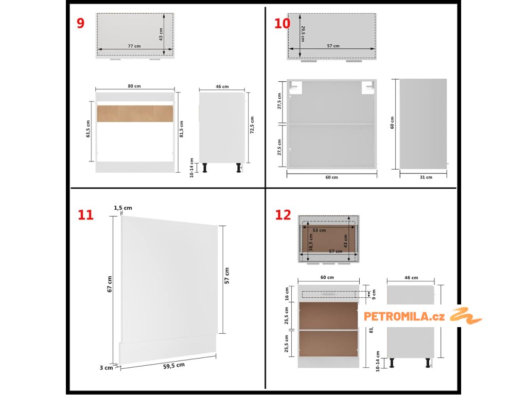 - 1 x Dřezová spodní skříňka: 80 x 46 x 81,5 cm (Š x H x V)