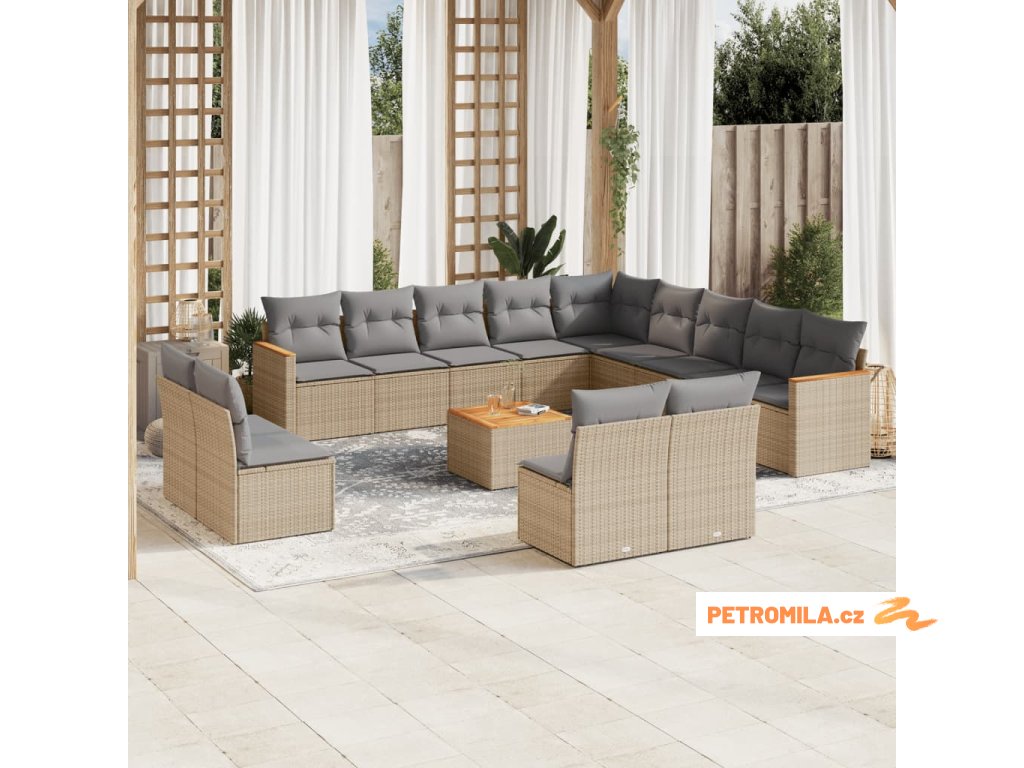 14dílná zahradní sedací souprava a podušky mix béžové polyratan