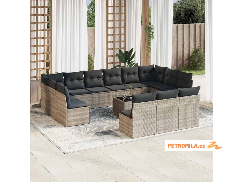 14dílná zahradní sedací souprava podušky světle šedá polyratan