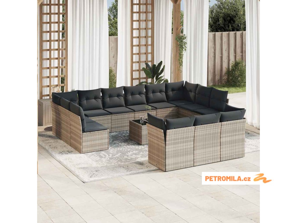 14dílná zahradní sedací souprava podušky světle šedá polyratan