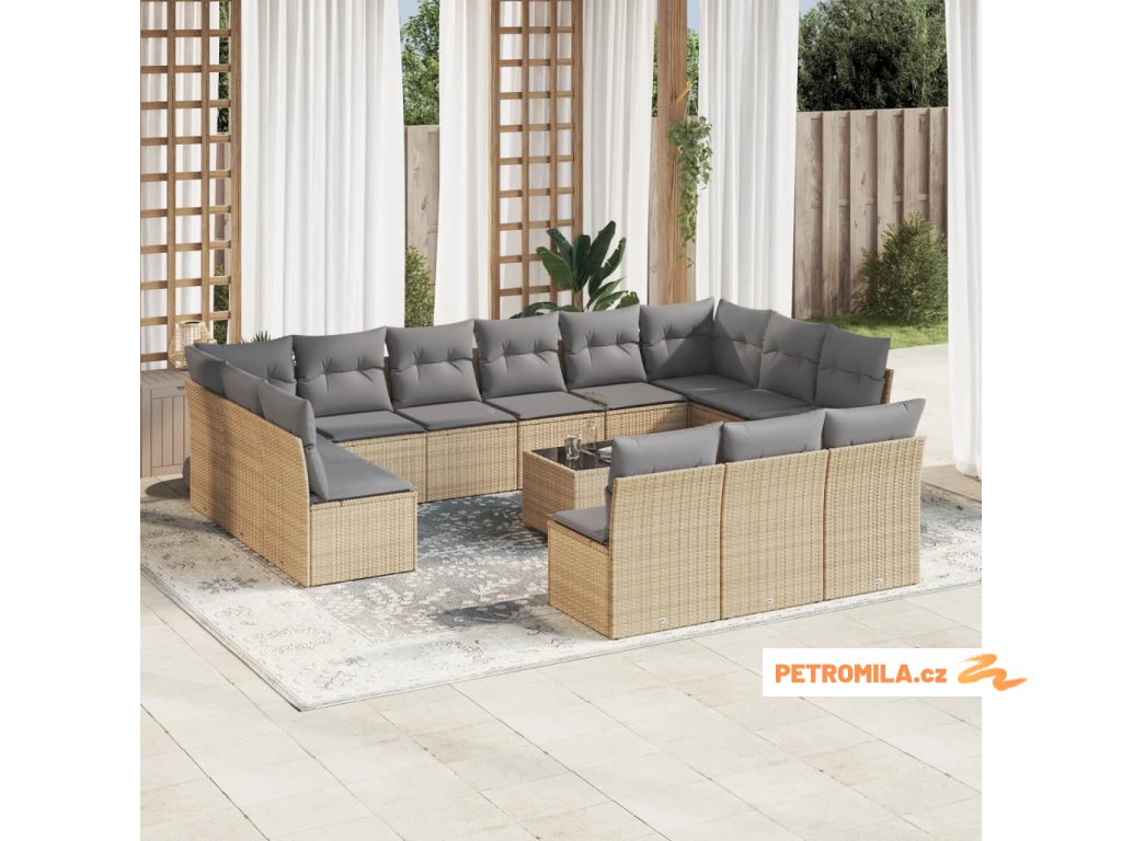 14dílná zahradní sedací souprava s poduškami béžová polyratan