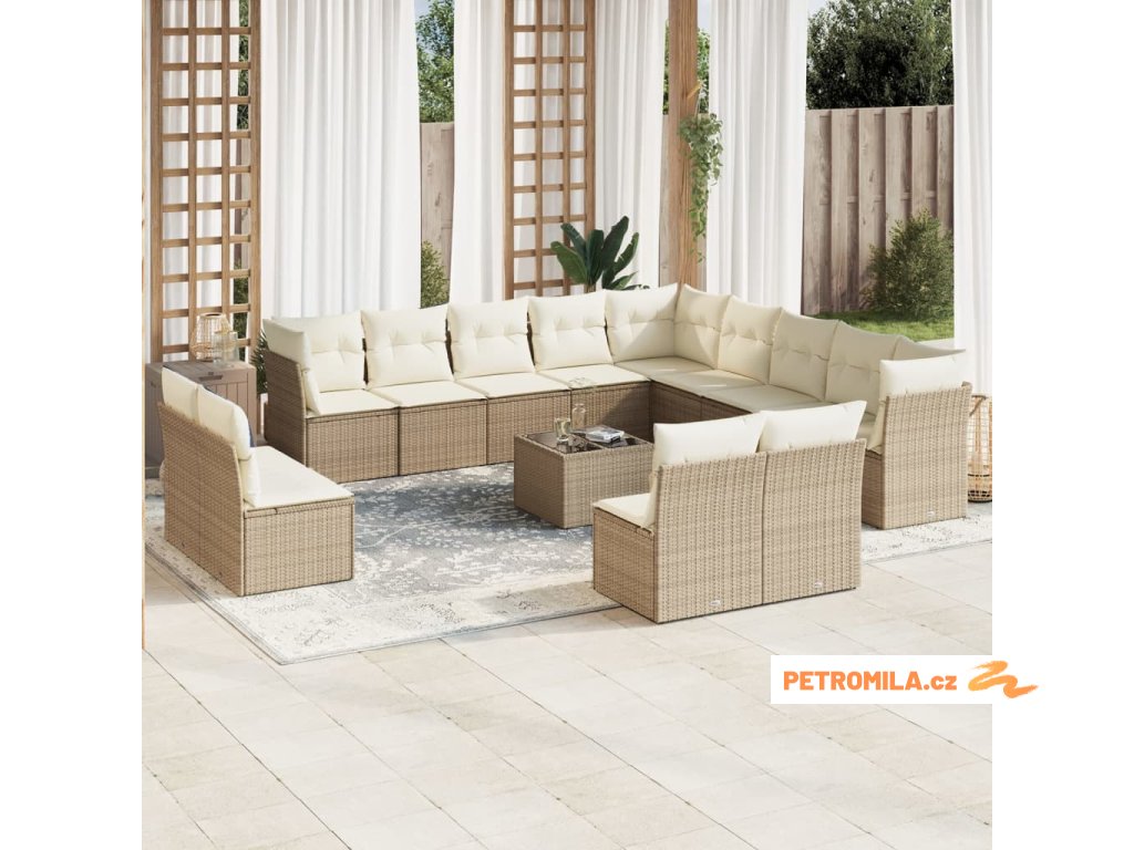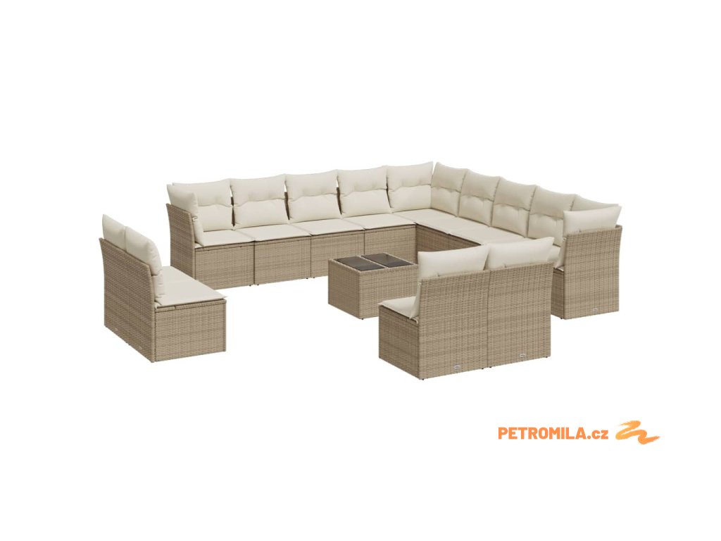 14dílná zahradní sedací souprava s poduškami béžová polyratan