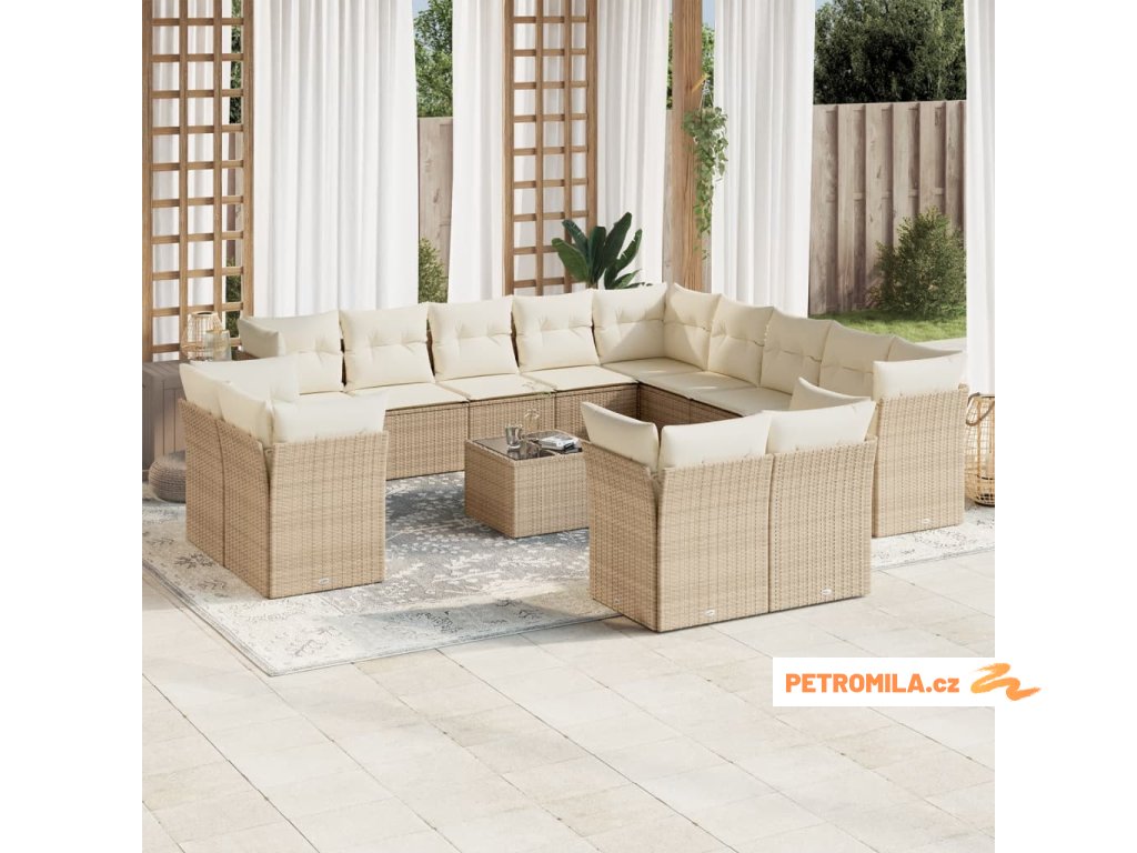 13dílná zahradní sedací souprava s poduškami béžová polyratan