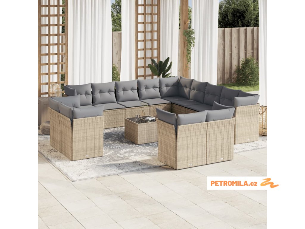 13dílná zahradní sedací souprava s poduškami béžová polyratan
