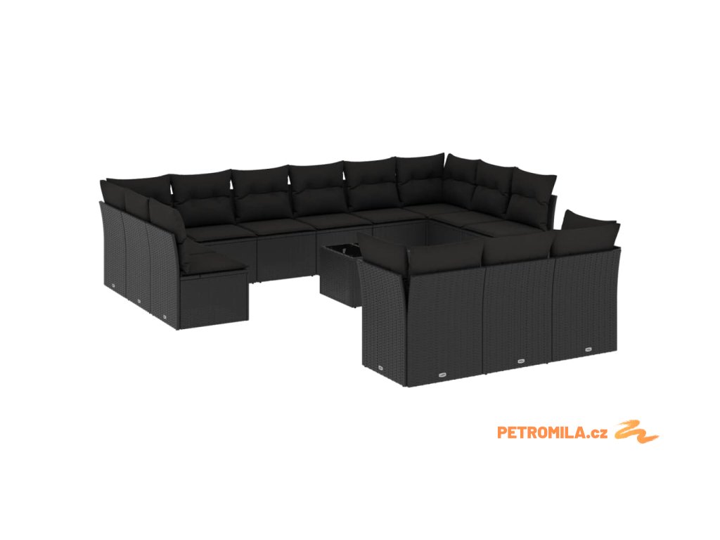 14dílná zahradní sedací souprava s poduškami černá polyratan