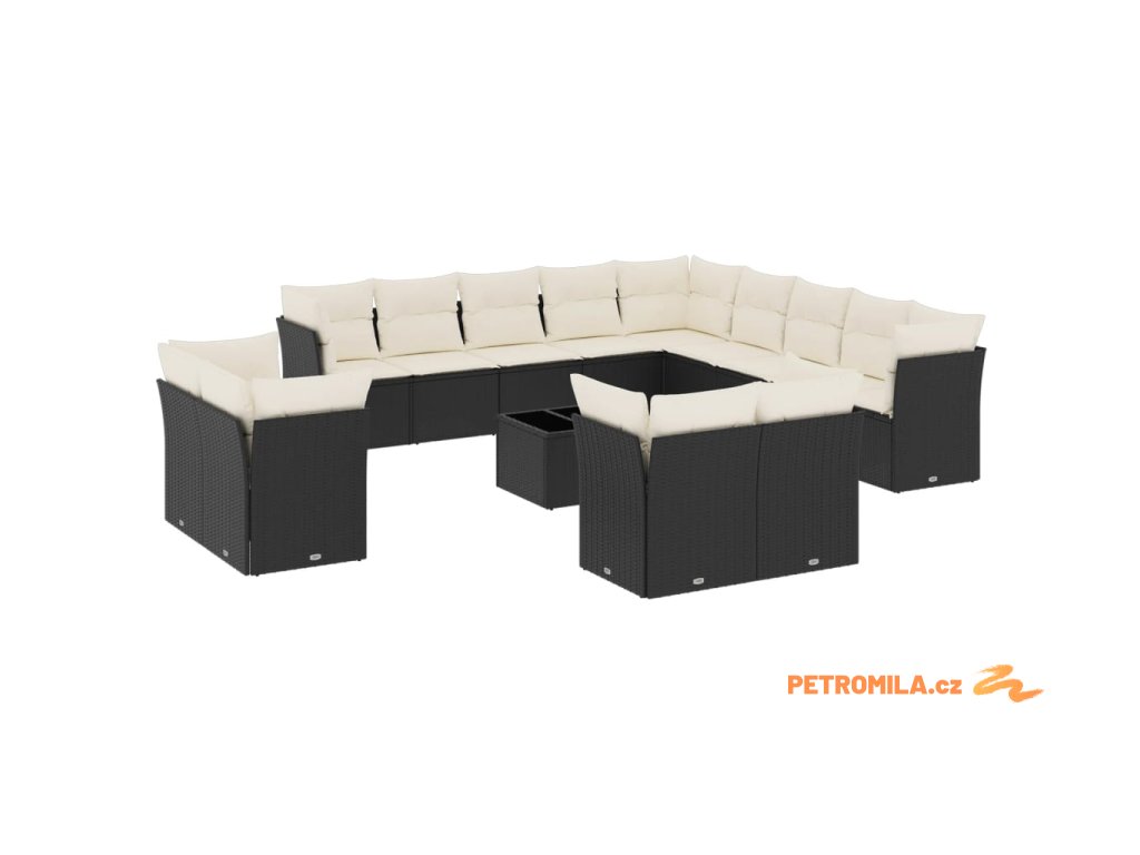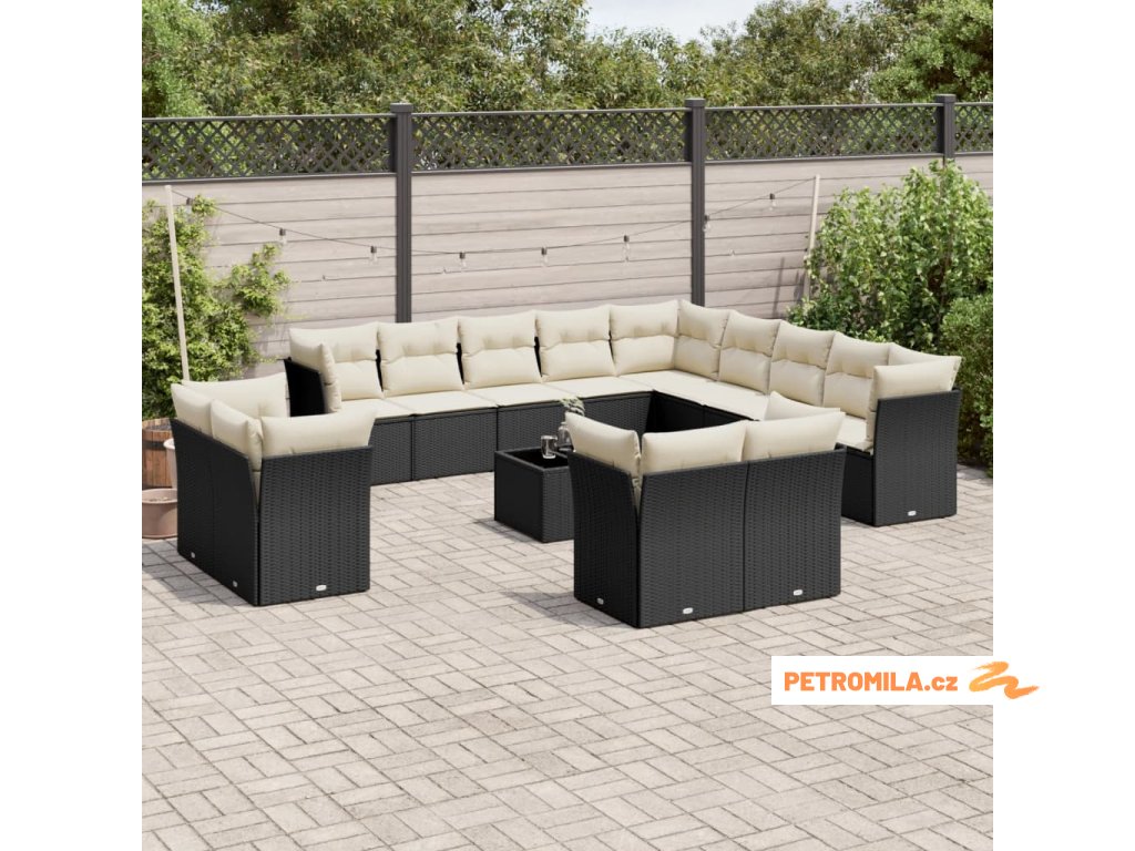 14dílná zahradní sedací souprava s poduškami černá polyratan