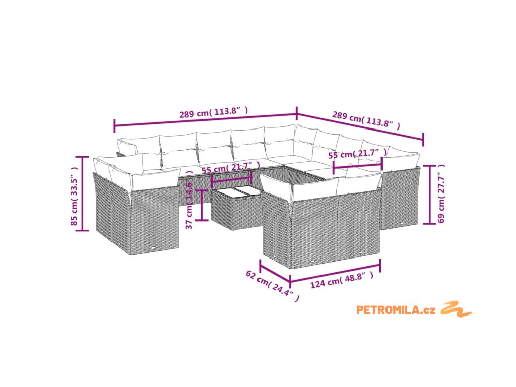 - 13x poduška na sedák s odnímatelným a pratelným potahem