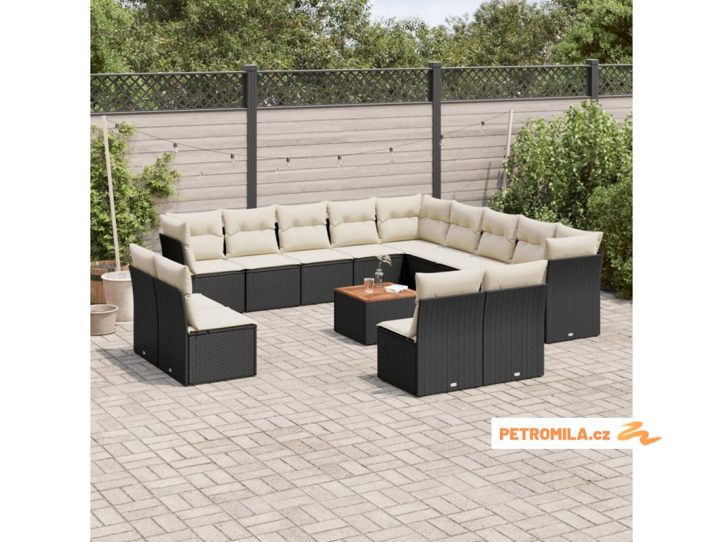 14dílná zahradní sedací souprava s poduškami černá polyratan