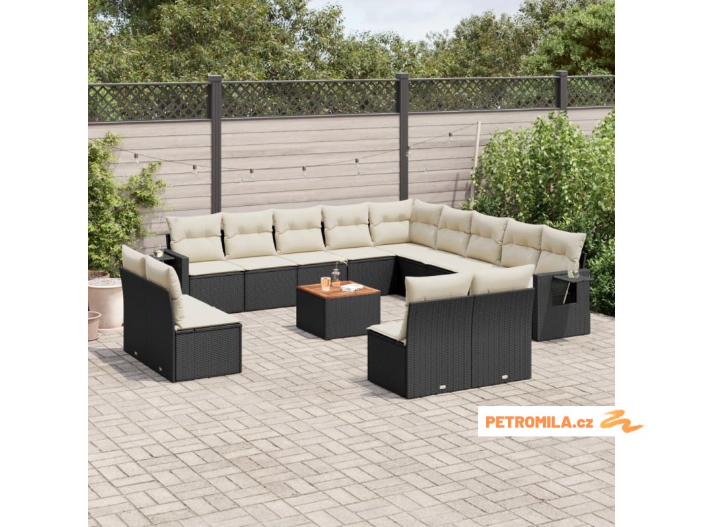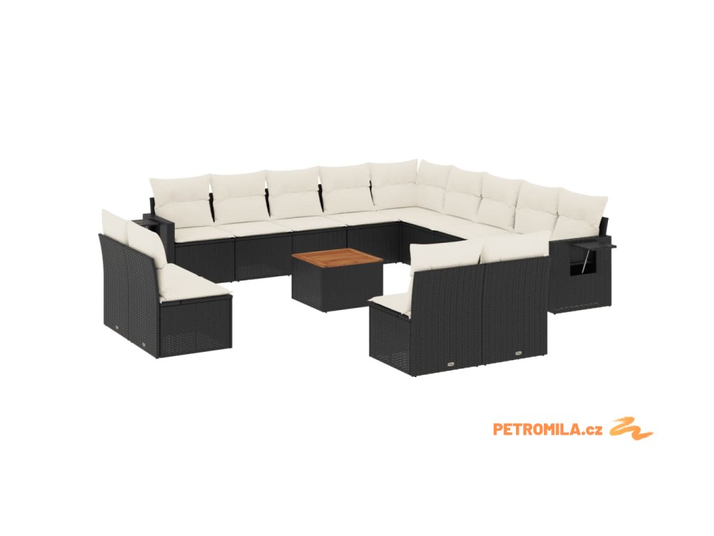 14dílná zahradní sedací souprava s poduškami černá polyratan