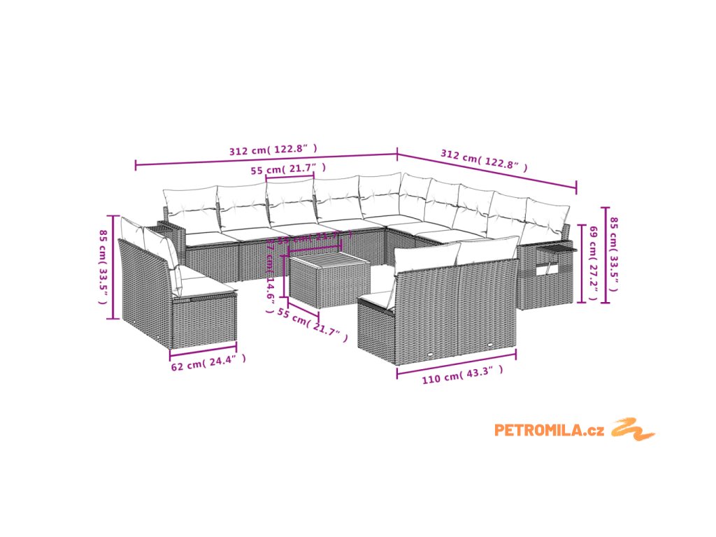 - 13x poduška na sedák s odnímatelným a pratelným potahem