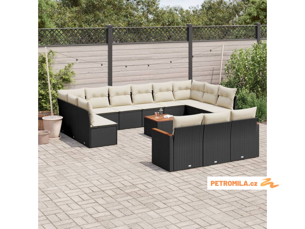 14dílná zahradní sedací souprava s poduškami černá polyratan