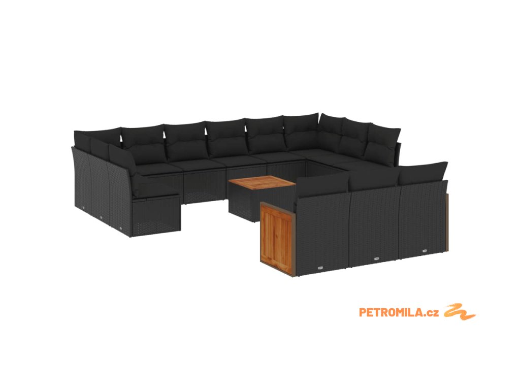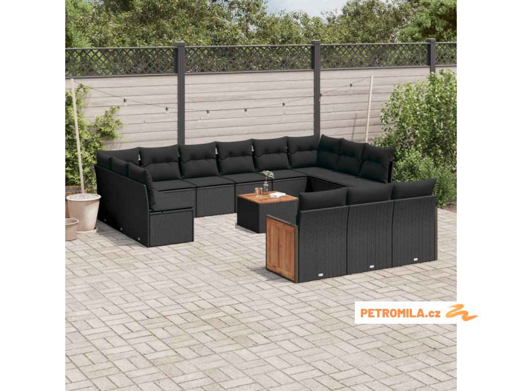 14dílná zahradní sedací souprava s poduškami černá polyratan