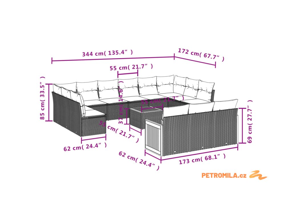 - 13x poduška na sedák s odnímatelným a pratelným potahem