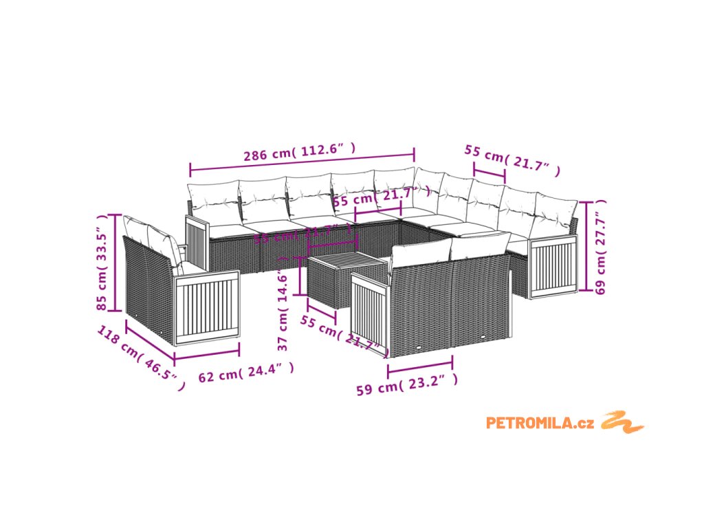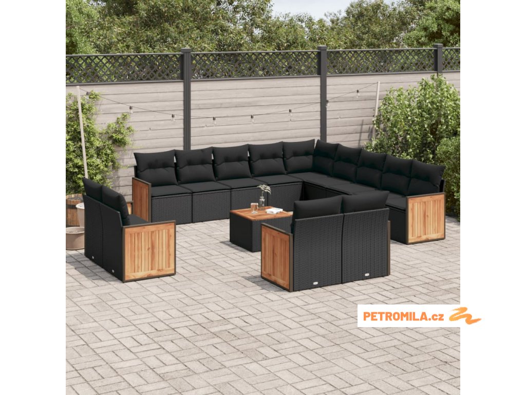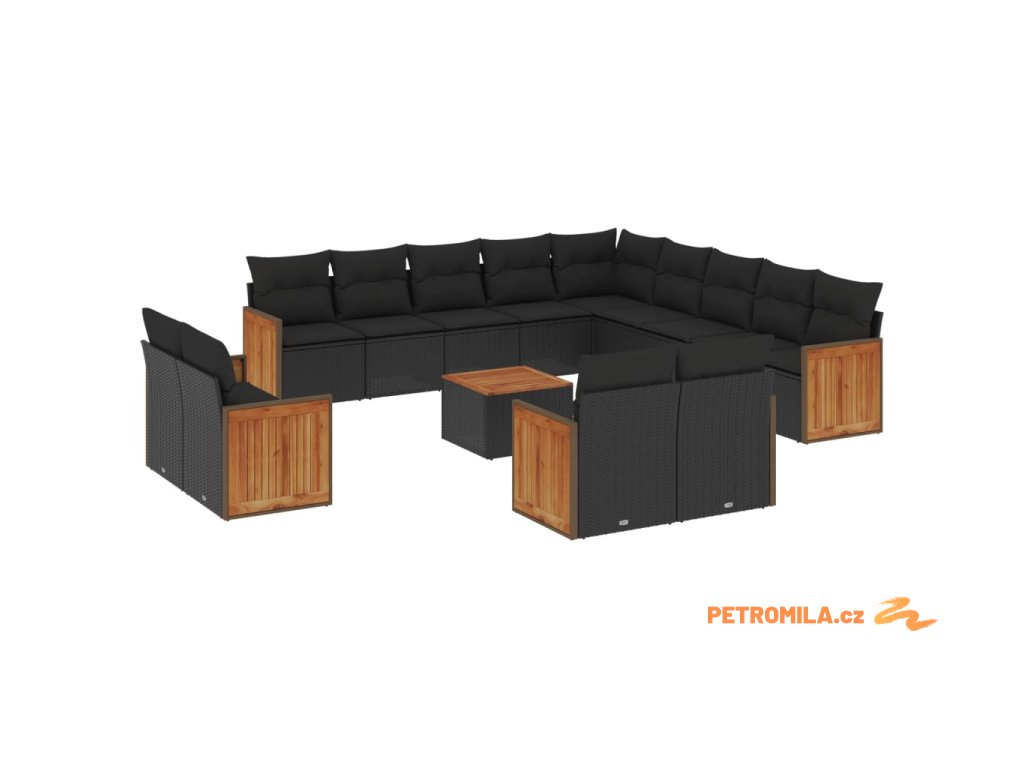 14dílná zahradní sedací souprava s poduškami černá polyratan