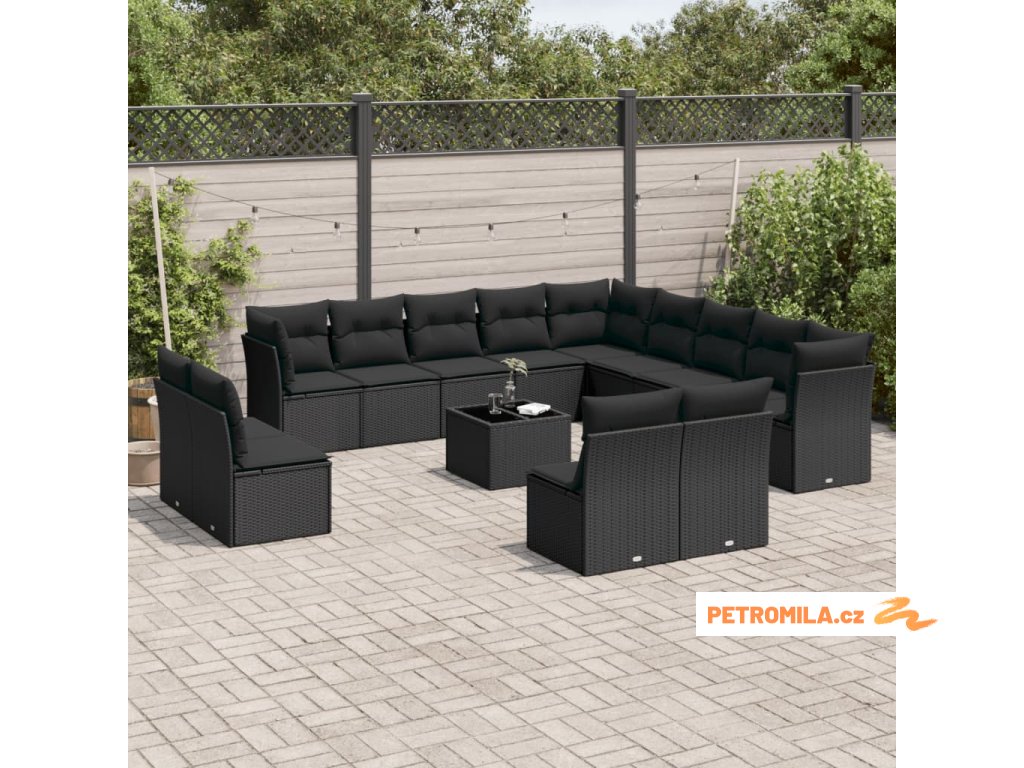 14dílná zahradní sedací souprava s poduškami černá polyratan