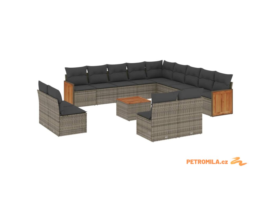 14dílná zahradní sedací souprava s poduškami šedá polyratan