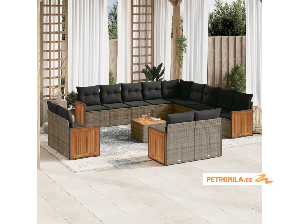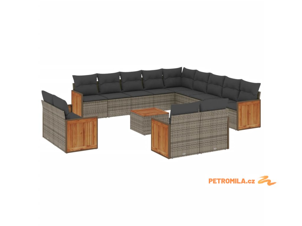14dílná zahradní sedací souprava s poduškami šedá polyratan