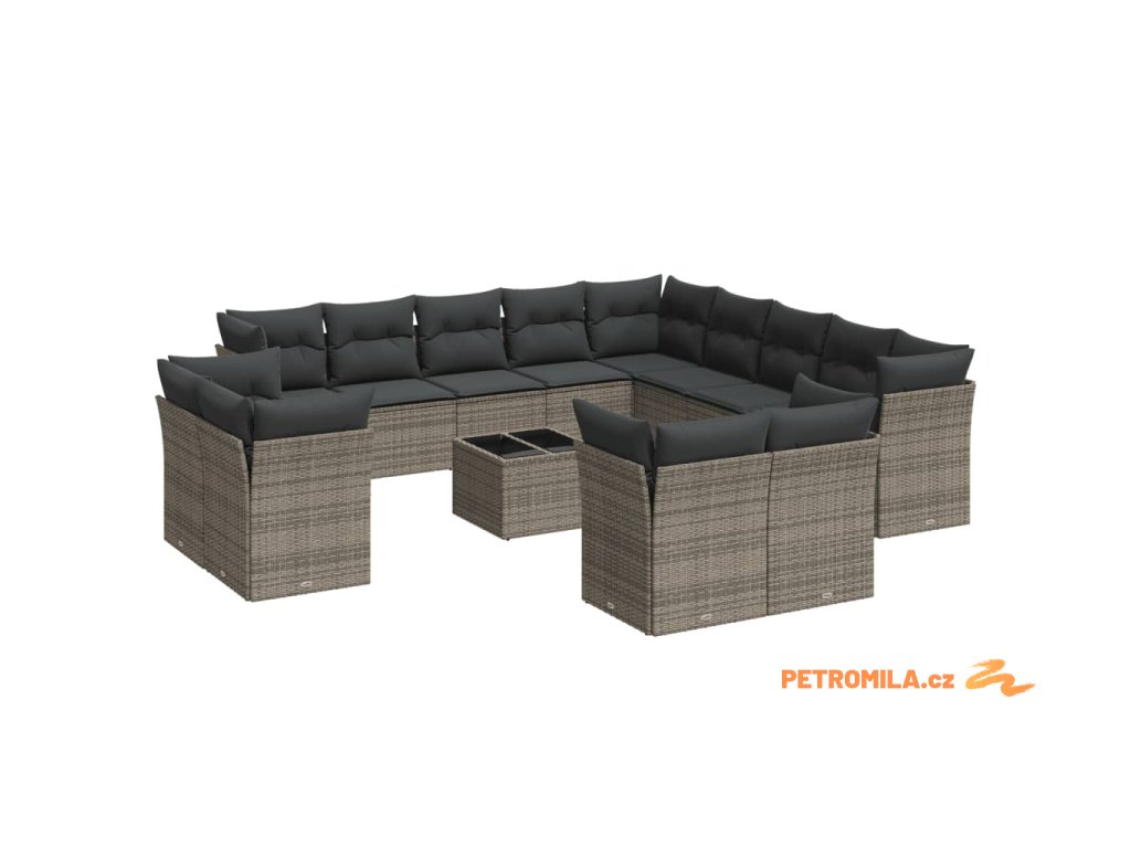 14dílná zahradní sedací souprava s poduškami šedá polyratan