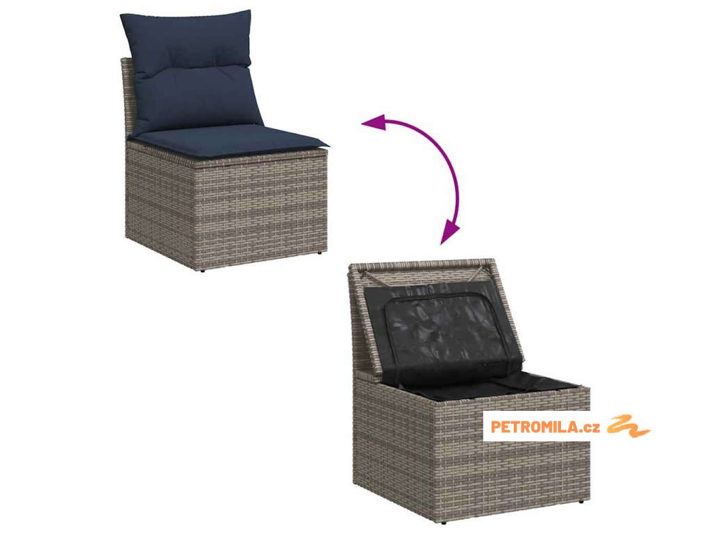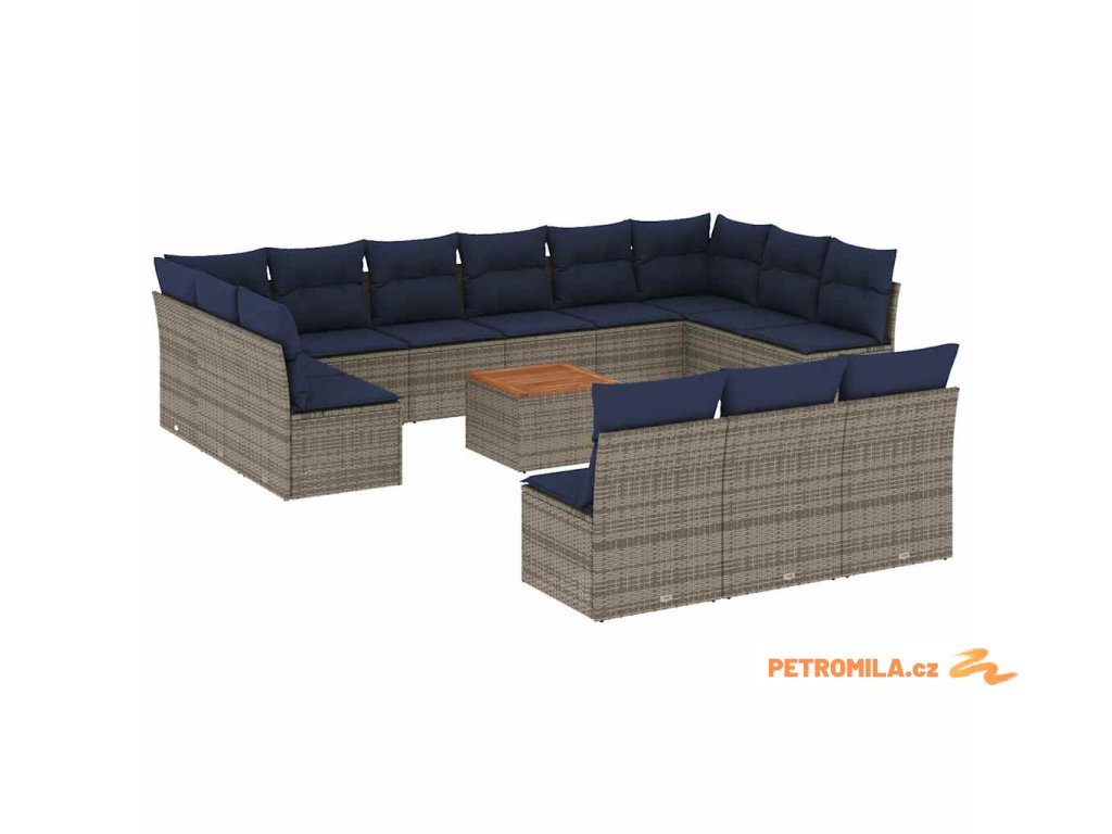 14dílná zahradní sedací souprava s poduškami šedá polyratan