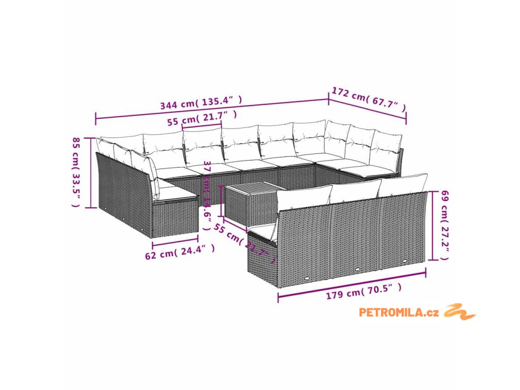 - 13x poduška na sedák s odnímatelným a pratelným potahem