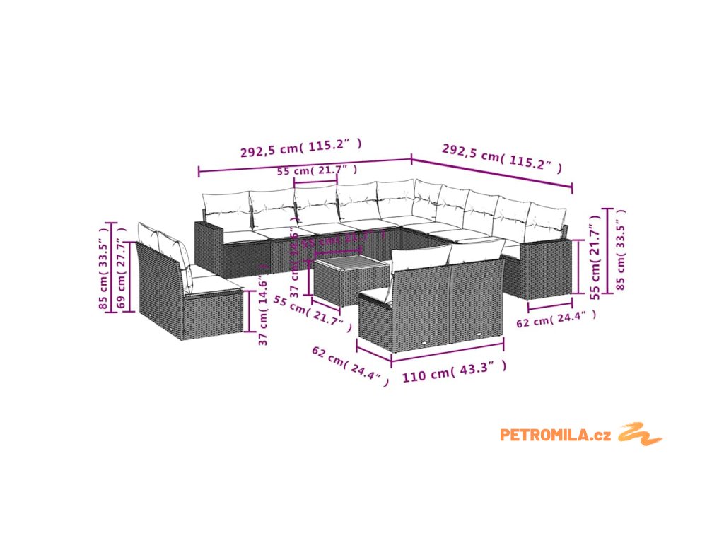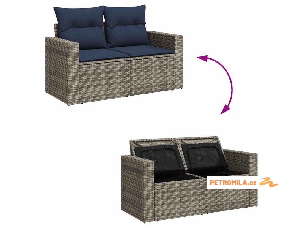 14dílná zahradní sedací souprava s poduškami šedá polyratan